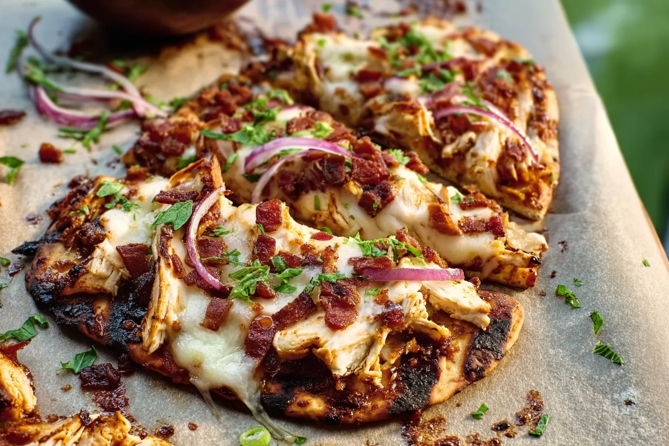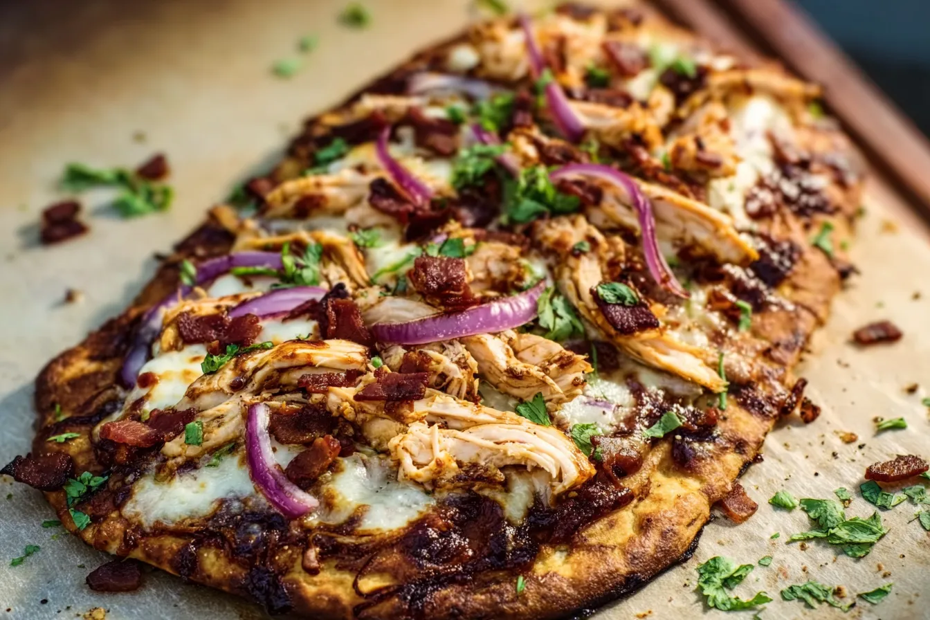 Savor the flavors of BBQ chicken crispy bacon and melty cheese in this easy flatbread recipe that will delight your taste buds Enjoy every bite