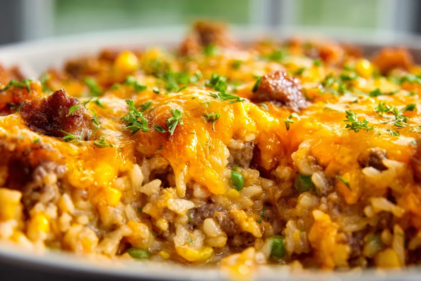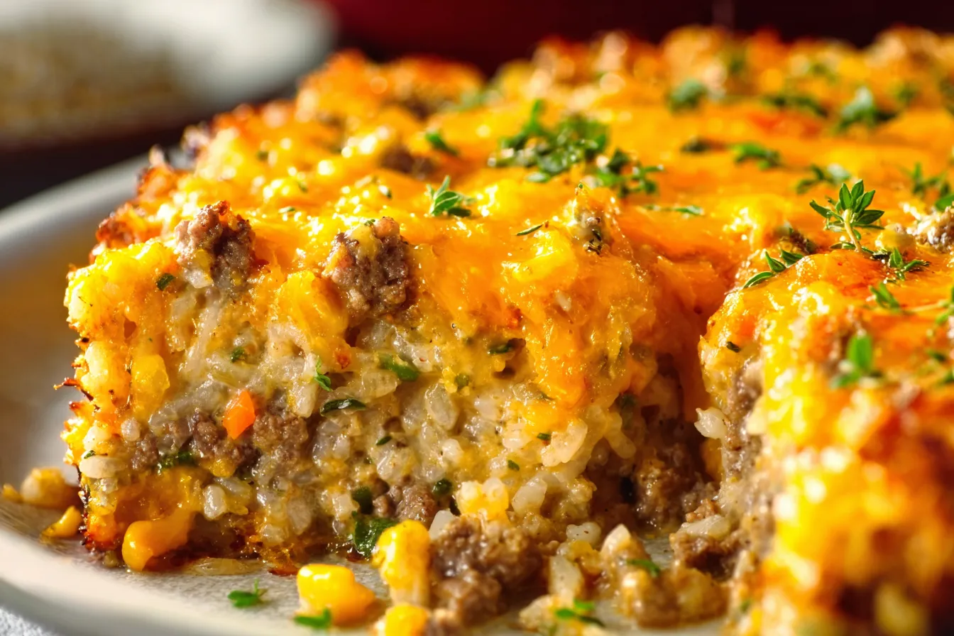 Savory Beef & Cheddar Rice Bake: Quick, Effortless Delight