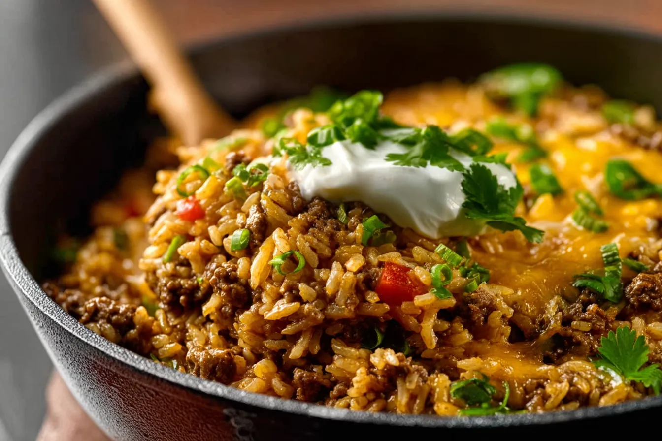 Savor the flavors of a Beef Taco Rice Skillet, a quick, delicious meal perfect for busy nights. Discover this easy recipe today! (154 chars)