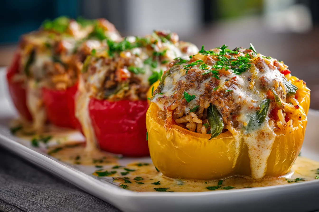 Savory Cheesy Beef & Rice Stuffed Peppers Recipe That Delights