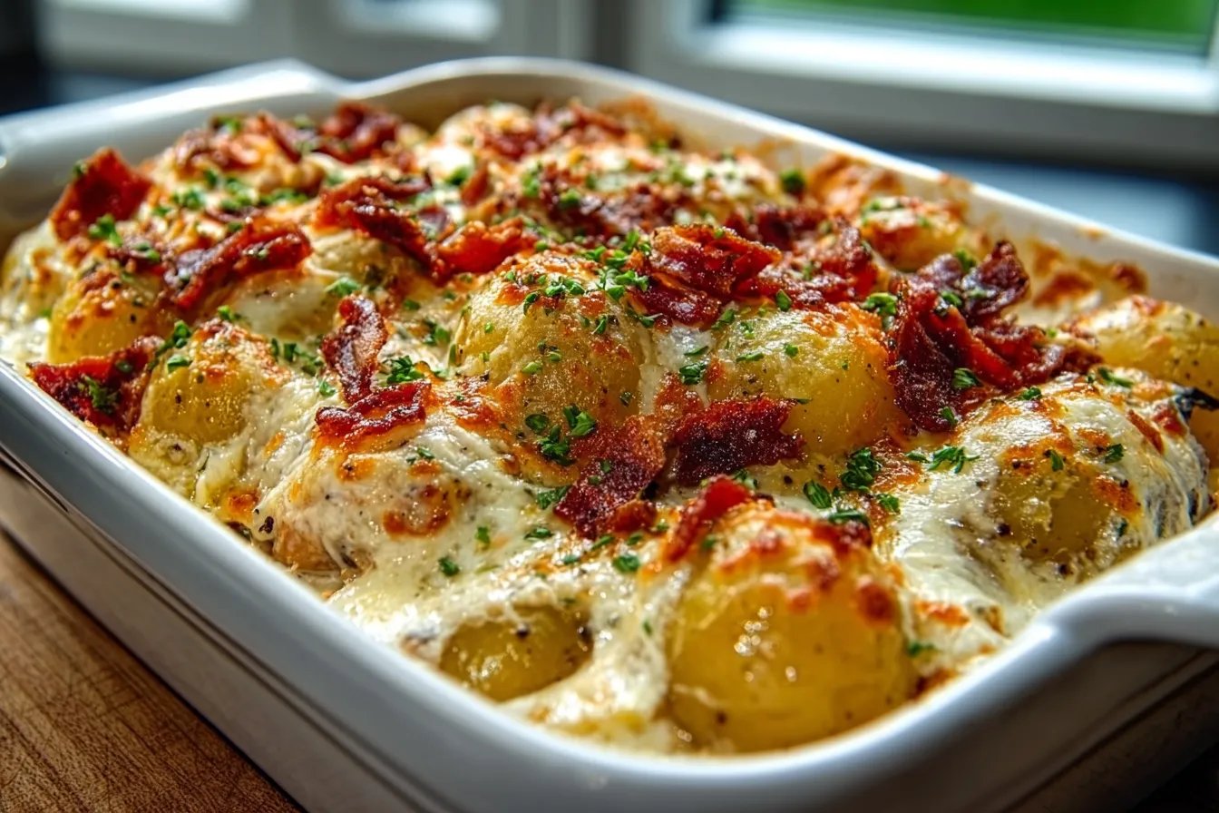 Discover the ultimate Cheesy Chicken Potato Bake, a dinner delight that combines creamy cheese, tender chicken, and hearty potatoes for a satisfying meal.