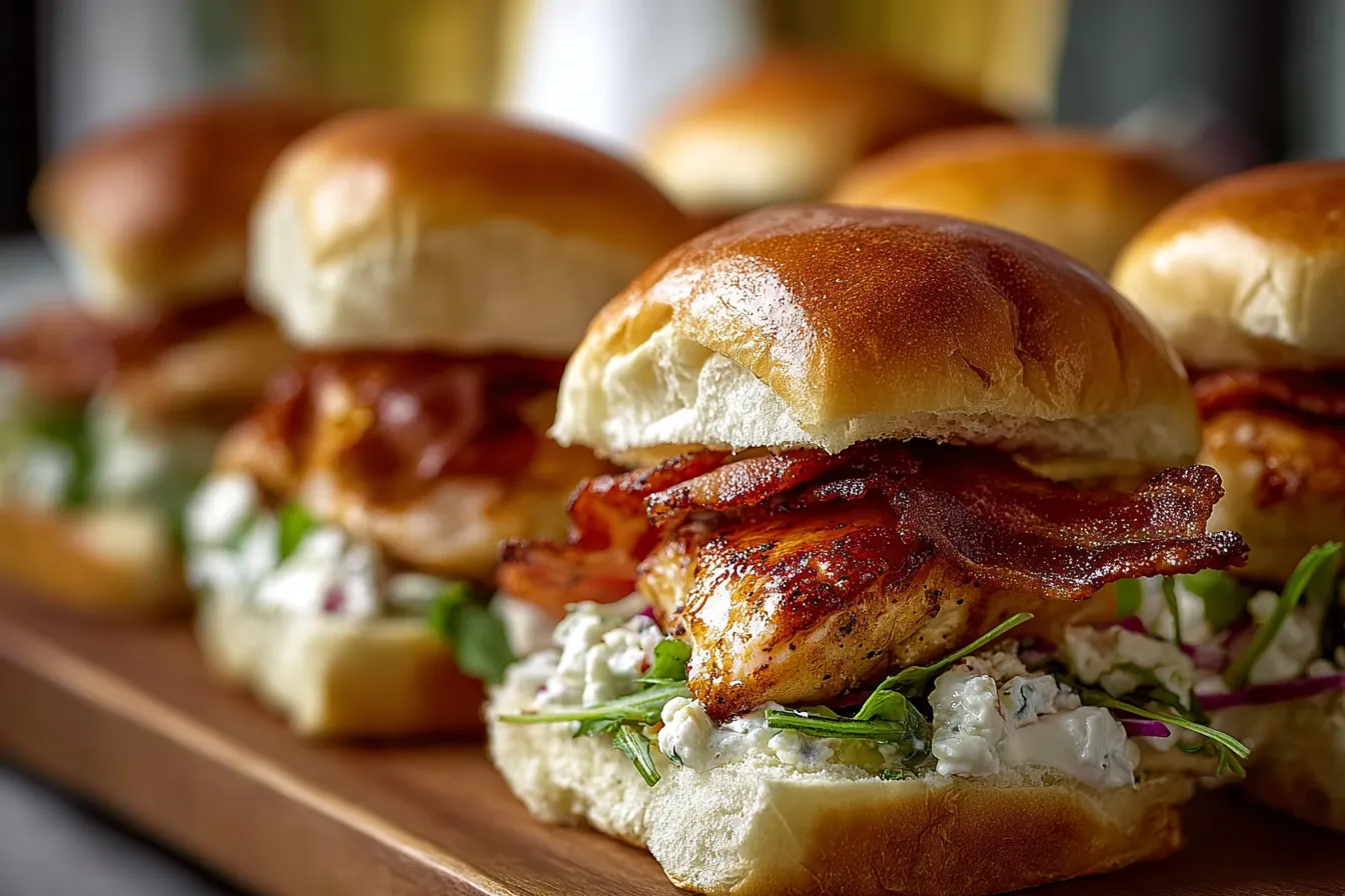 Delicious Chicken Bacon Ranch Sliders with crispy bacon, tender chicken, and zesty ranch dressing.