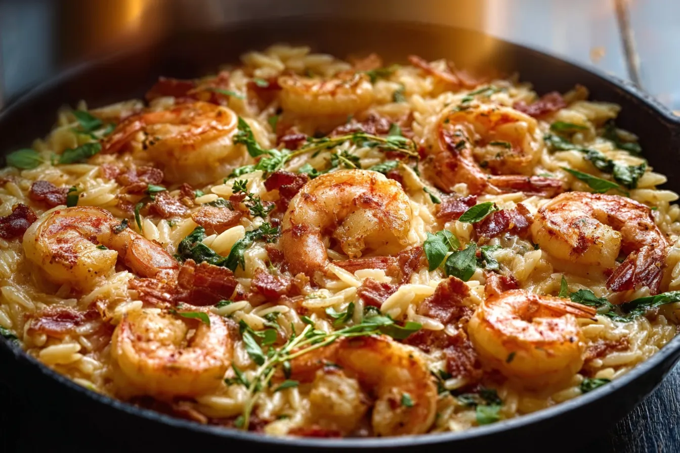 A quick and delicious Creamy Shrimp Orzo Skillet recipe that is perfect for busy weeknight dinners. It combines juicy shrimp, creamy sauce, and satisfying orzo pasta in under 30 minutes.