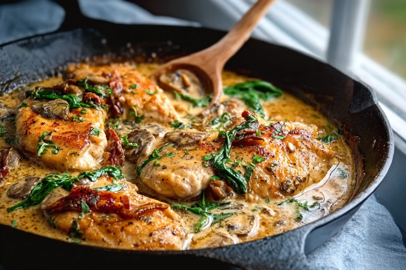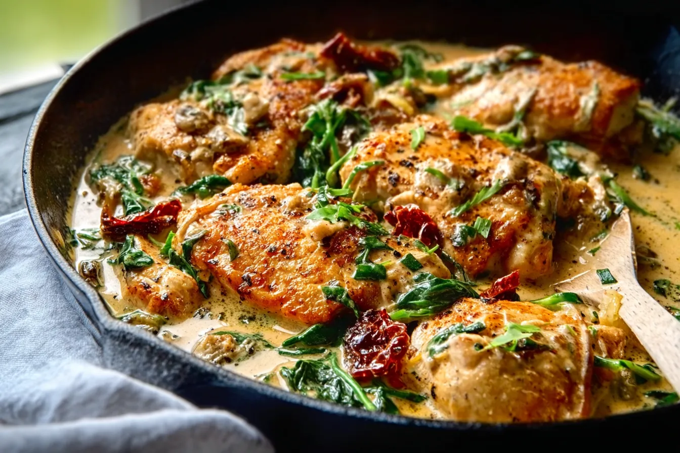 A quick and delicious recipe for creamy Tuscan chicken skillet that combines rich flavors and vibrant ingredients for an explosion of taste.