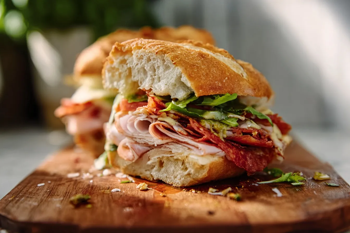 Discover how to create the viral Italian Grinder Sandwich, a flavorful layered delight featuring savory deli meats and fresh veggies, all dressed in a zesty sauce.