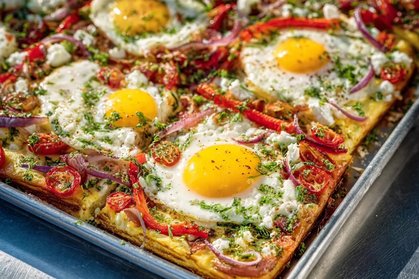 Once cooked, remove the sheet from the oven and allow it to cool for a few minutes. Then, slice into squares or rectangles for easy serving. Garnish with fresh herbs or avocado slices for a beautiful presentation.