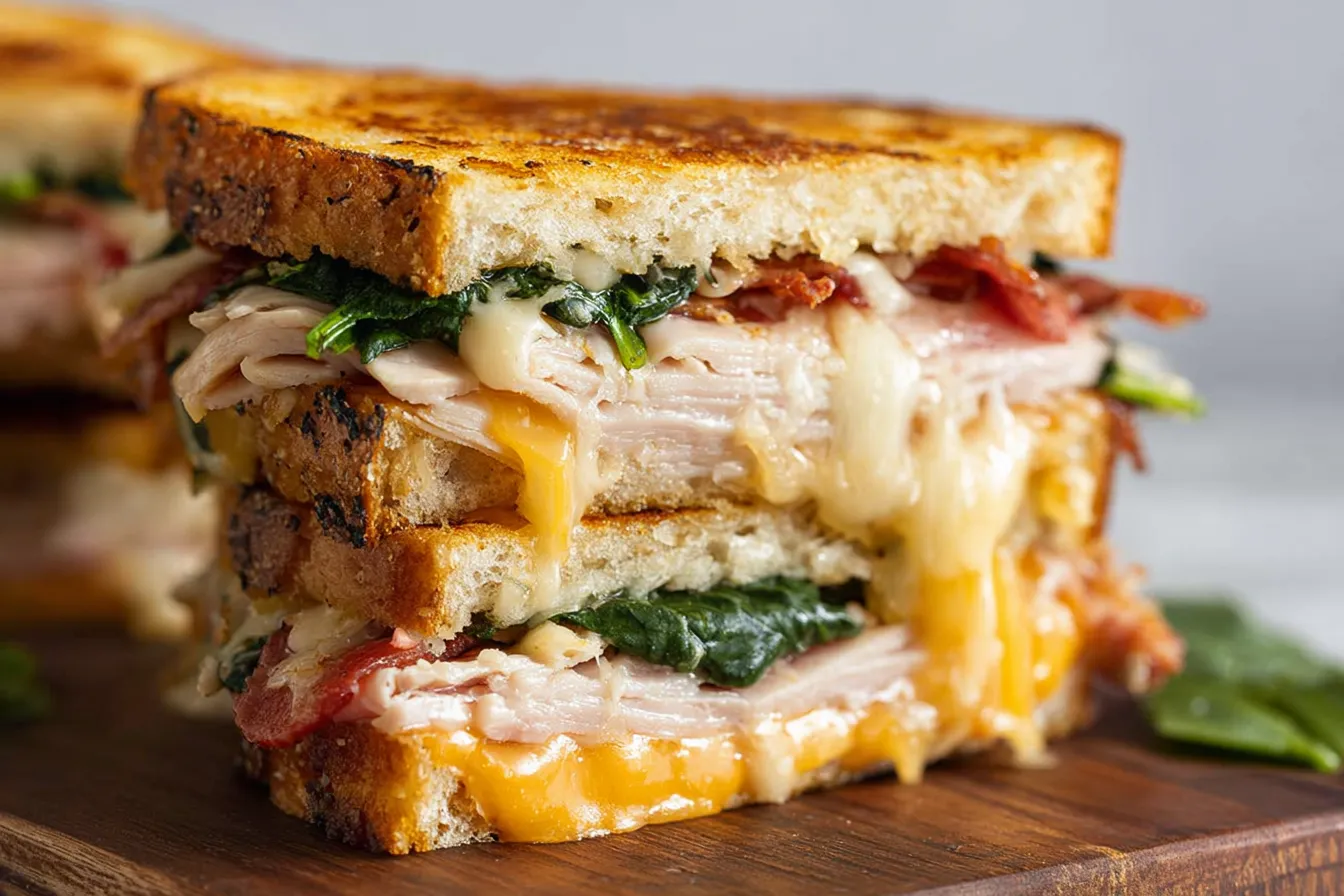 A delicious, hearty sandwich combining savory turkey, creamy cheddar, crisp bacon, and fresh spinach, prepared in just 30 minutes.