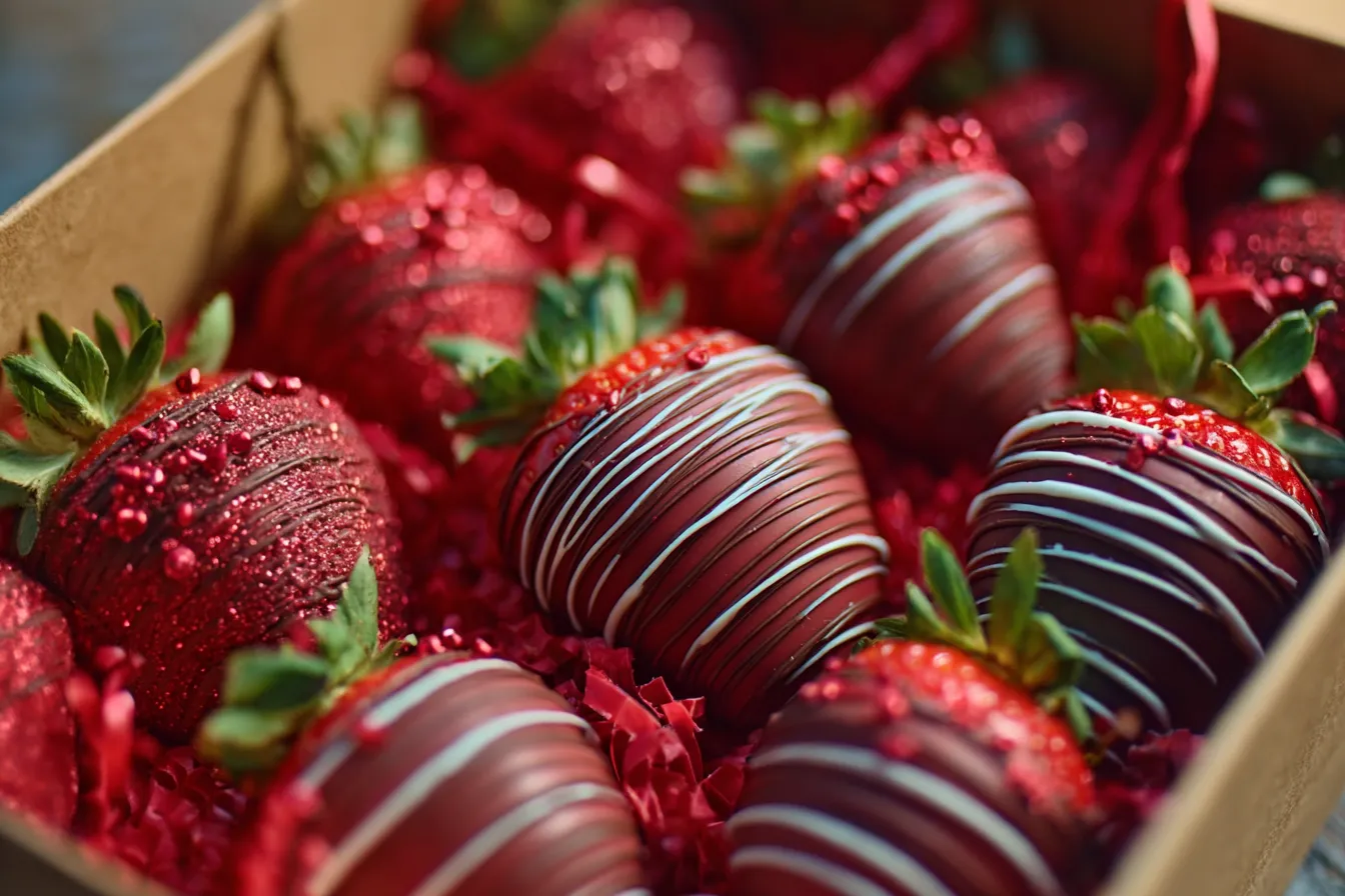 - Place the strawberries in a decorative heart-shaped box for that perfect Valentine’s aesthetic.